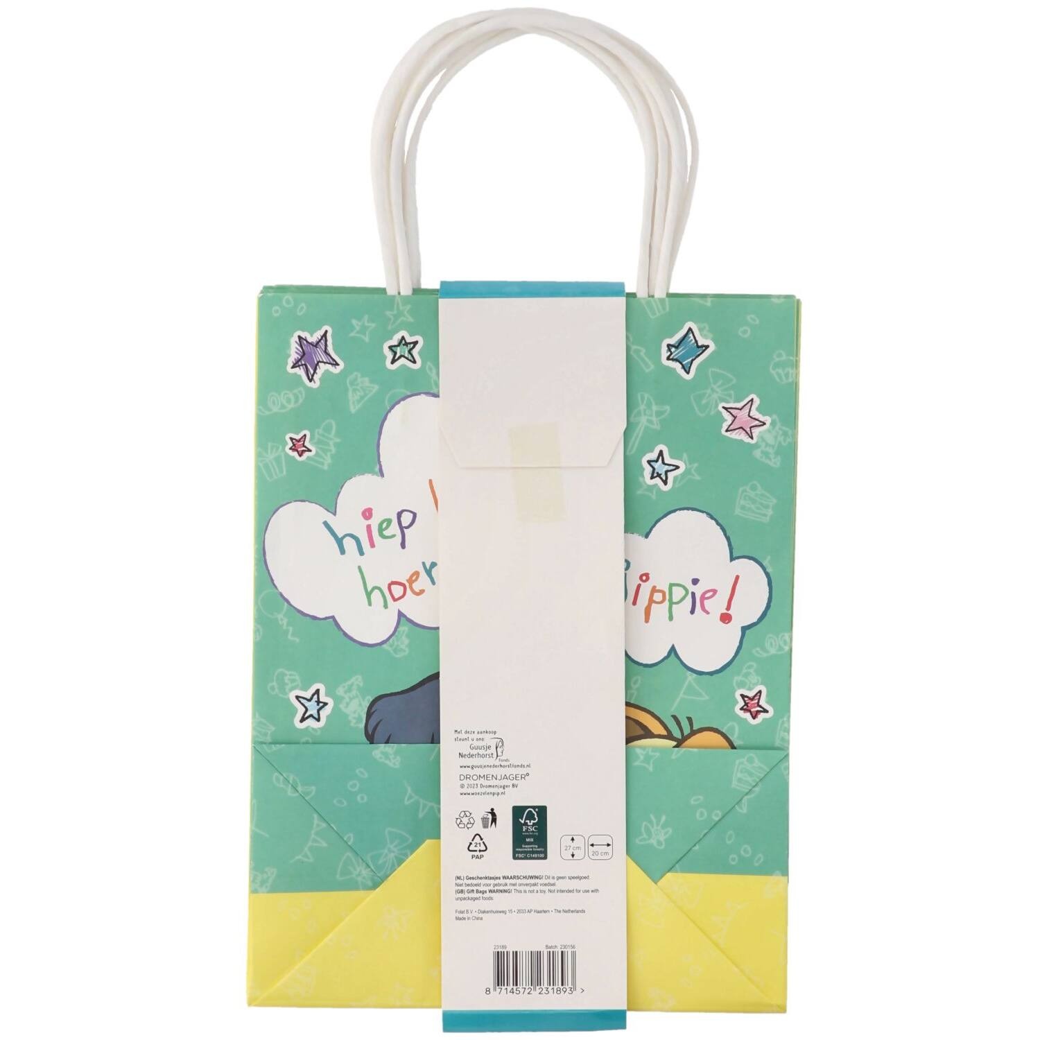 Speciale tasjes voor speciale vriendjes! Uitdeelzakjes, Woezel en Pip, 27 x 20 cm, 6 stuks. Inhoud: 6 uitdeelzakjes. De vrolijkheid spat eraf en dat maakt deze tasjes echt typisch Woezel en Pip. Groot genoeg voor speciale cadeautjes voor speciale vriendjes, maar ook heel mooi voor traktaties. De ene kant is geel met de hele vriendenclub bij elkaar en de andere kant is groen met Woezel en Pip. Dit artikel is gemaakt van FSC papier.