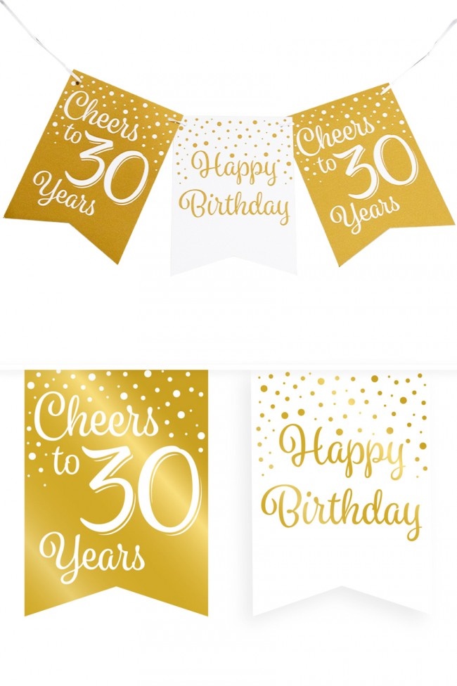Verjaardagsslinger Vaandel 30 jaar Goud/Wit (6m)