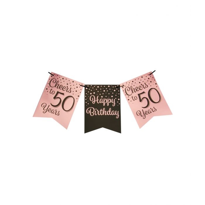 Verjaardagsslinger Vaandel 50 Jaar Roze/Zwart (6m)
