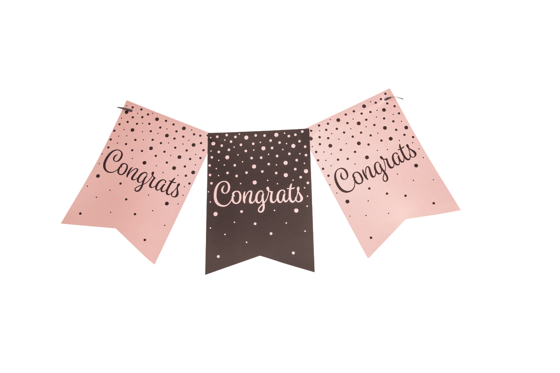 - Verjaardagsslinger Vaandel 'Congrats' Roze/Zwart - Lengte Slinger: 6m (10 vaandels aan 1 lijn)- Afmeting slinger: 20 x 14.5 cm- Dubbelzijdig Gedrukt- Materiaal: Karton