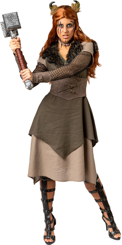 - Bestaande uit: 2-laags jurk met bontbekleding, heupriem en armwarmers