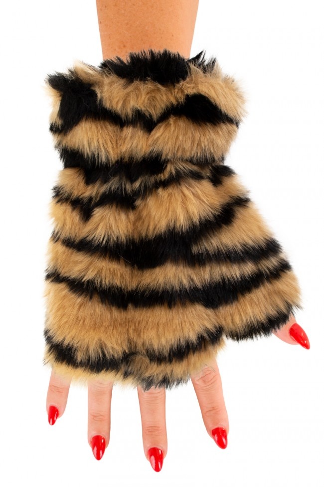 - Vingerloze handschoenen pluche Tijger- One size (volwassenen)
