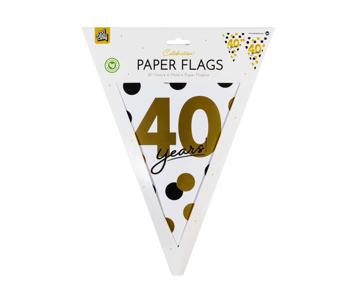 Vlaggenlijn Celebration 40 Jaar Wit/Goud/Zwart