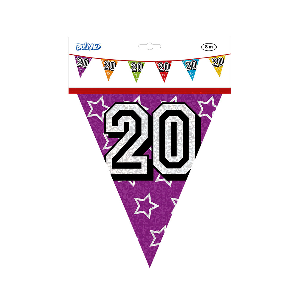 - Vlaggenlijn Holografisch 20 Jaar - 8 Meter- Lengte: 8 meter lang- Materiaal: Plastic- Enkelzijdig bedrukt