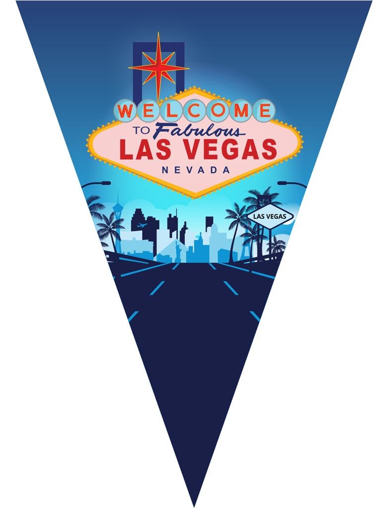 - Vlaggenlijn Las Vegas - Lengte: 5 meter- 10 vlaggetjes op vlaggenlijn- Materiaal: PVC