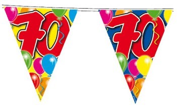 - Vlaggenlijn leeftijd '70'- Lengte 10 meter- Materiaal pvc- Tweezijdig bedrukt