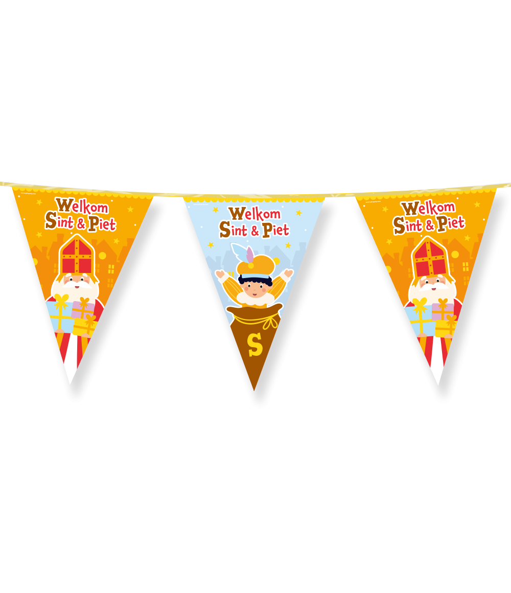 - Vlaggenlijn Welkom Sint & Piet Cartoon Vigo - Lengte vlaggenlijn: 10 meter - Materiaal: Folie - Dubbelzijdig bedrukt