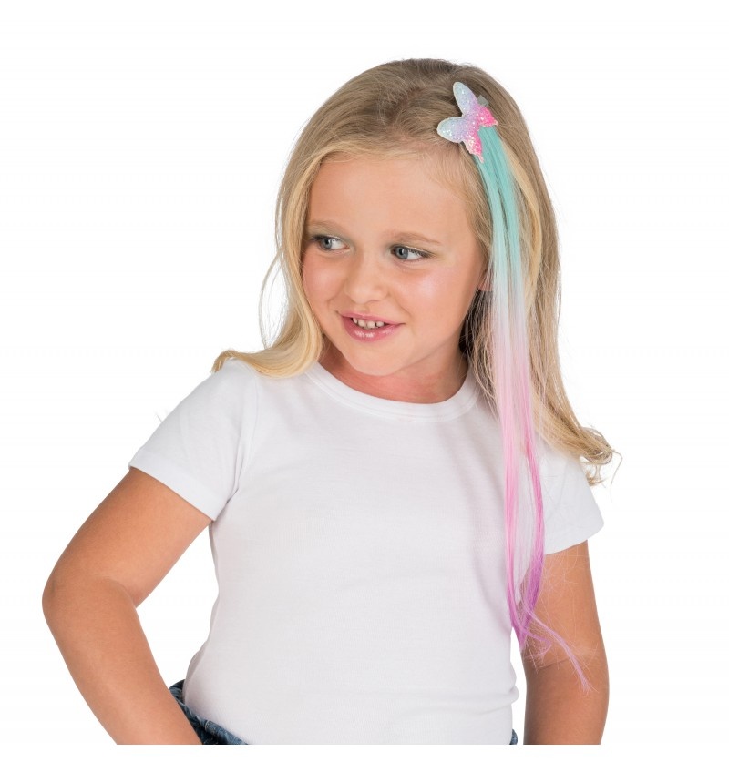 - Vlinder Haarclip Met Blauw/Roze Haar- Afmetingen: 45cm (l) x 5,5cm (b)- Materiaal: Polyester en kunststof
