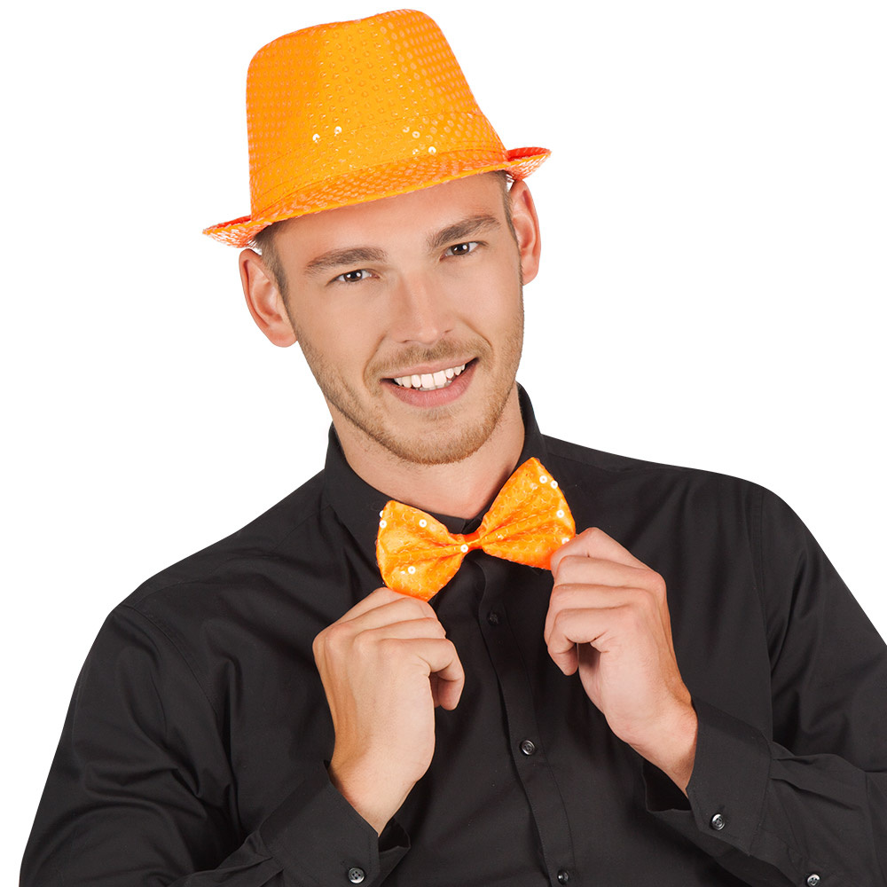 - Vlinderstrik Pailletten Oranje- Materiaal: Polyester