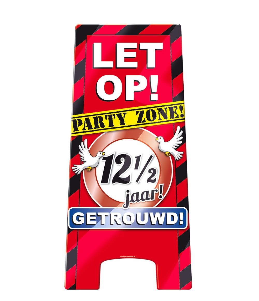 - Waarschuwingsbord 12,5 Jaar Getrouwd- Inhoud: 1 waarschuwingsbord- Materiaal: Hard karton met beschermde (gladde) afwerking- Afmetingen: 23 x 58 cm