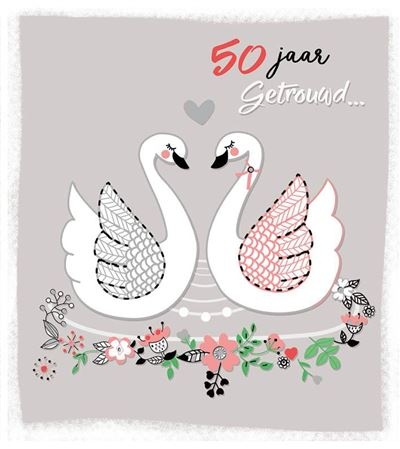 - Wenskaart 50 Jaar Getrouwd Zwaantjes- Afmetingen: 14 x 12cm- Materiaal: Karton- Inclusief Envelop (rood)- Kaart kan opengeklapt worden om er een boodschap in te schrijven.