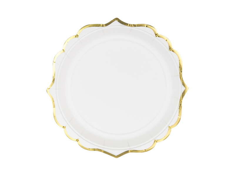 -Witte Bordjes met Gouden rand- 6 stuks in een verpakking-Diameter ± 18cm-De bordjes zijn perfect voor een babyshower, bruiloft of verjaardag.