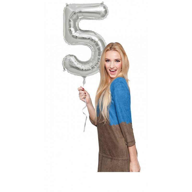 Zilveren Folieballon Cijfer 5 - 86 cm