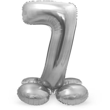 - Zilverkleurig Folieballon Cijfer 7 Op Standaard