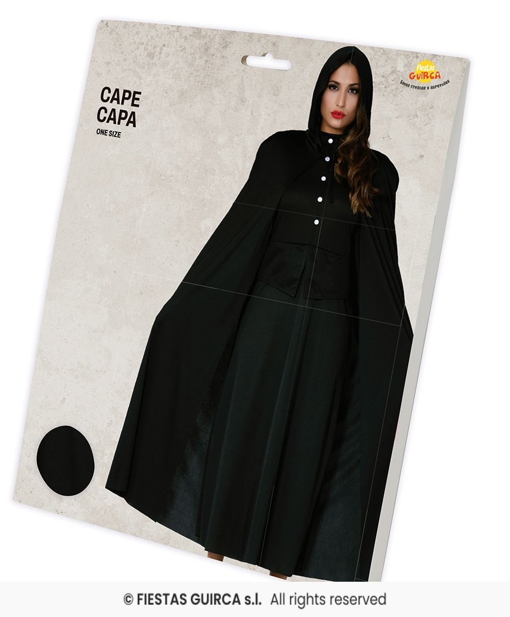 De cape is voorzien van een capuchon, zodat je helemaal in je karakter kunt kruipen, of je nu kiest voor een vampier, heks, tovenaar of een mysterieuze figuur. De verstelbare sluiting rond de hals zorgt ervoor dat de cape stevig blijft zitten, zelfs als je de hele nacht door de straten dwaalt.