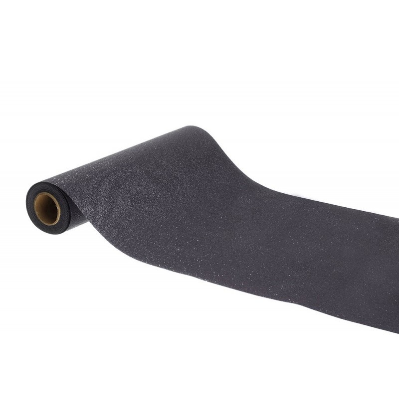 - Zwarte Glitter Tafelloper Premium- Afmeting 30cm x 500cm- Materiaal: 45% Non Woven; 55% Polyester pailletten