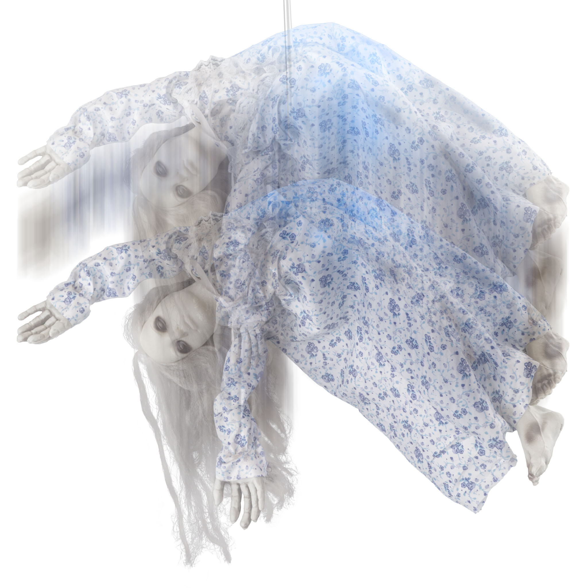 - Zwevende Zombie Dame Halloween- Inclusief beweging, licht & geluid (zie video)- Batterijsoort: AAA (niet inbegrepen)- Afmetingen: 70 x 10 x 75 cm